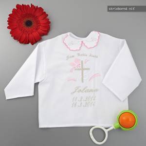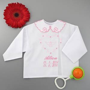 Košieľka ku krstu Motív srdce, zlato-modrý text