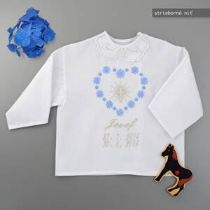 Košieľka ku krstu Motív modré srdce, strieborný text